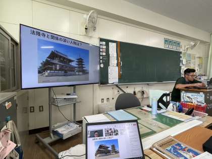 6年生は社会の学習をしました。歴史に関するクイズにチャット機能や手を挙げる機能を使って、楽しく学習することができました。