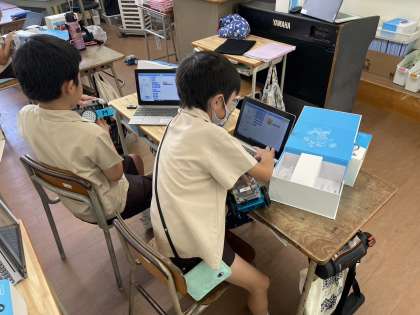 1学期最後のクラブ活動を行いました。どのクラブも一生懸命活動する姿が見られました。写真は、プログラミングクラブと運動クラブの様子です。