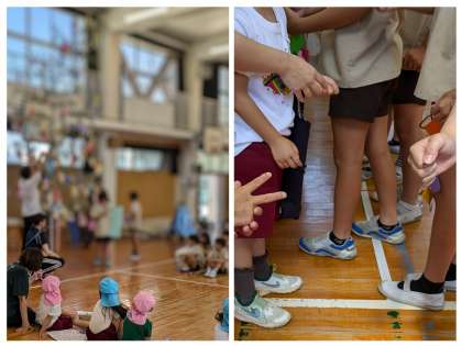 クラスの願いを知らせあって笹に短冊をつけたり、ゲームをして交流しました。