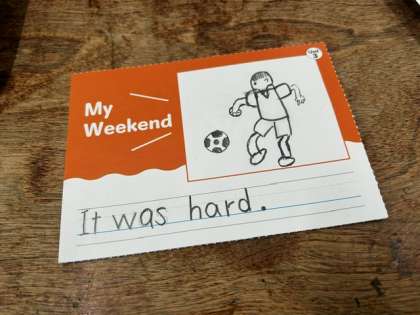週末の出来事について、ペアで発表することができました。イラスト付きの可愛いカードも書いていました!