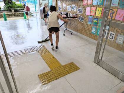 雨でぬれた滑りやすい床の雨水を吸水し、みんなが滑らないようにしてくれているのです。