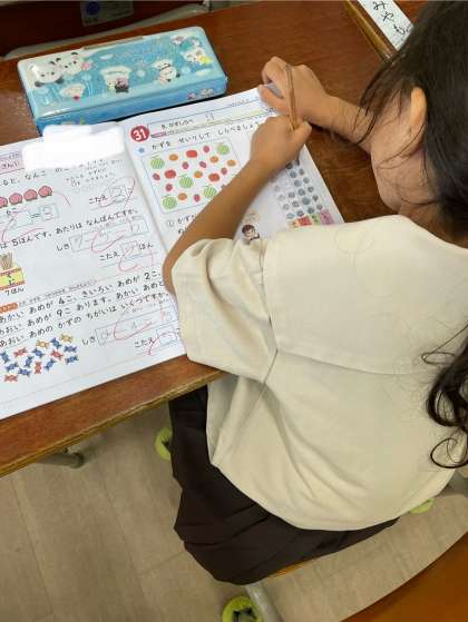 終業式後は、夏休みの過ごした方を確かめたり、算数の復習をしたりしました。