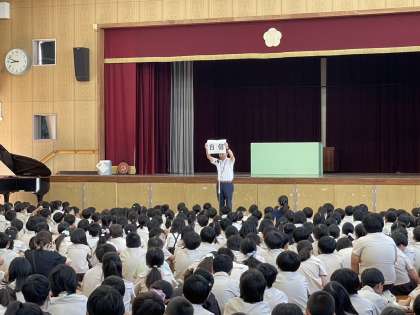 7月18日(木)、1学期の終業式を行いました。校長先生、生活指導の先生、保健の先生の話を真剣に聞くことができました。作文発表は5、6年生でした。とても素晴らしい発表でした。