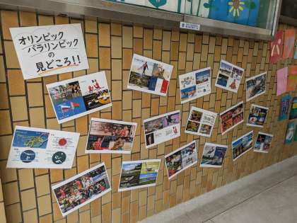 子どもたちが調べた「オリパラの見どころ」の掲示物をチェック!