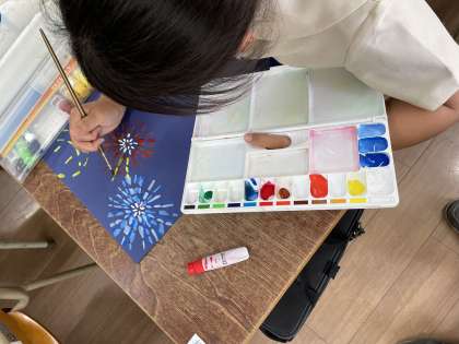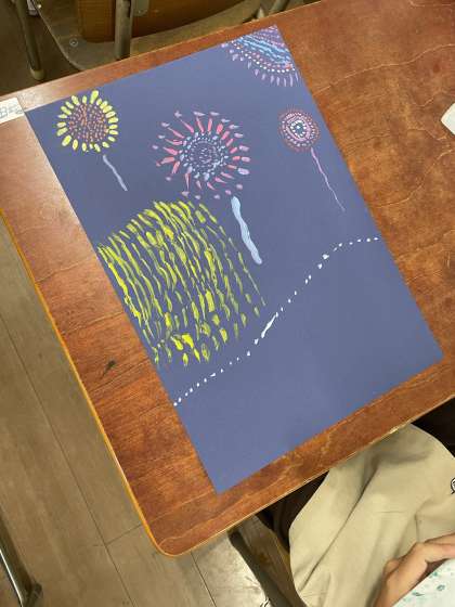 教室の中にとっても綺麗な花火が何輪も開きました。