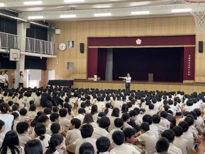 9月になりました。月に一度の講堂での児童朝会です。今月の月目標は「健康な体をつくろう」です。まだまだ暑さが厳しいですが、健康な体づくりを学校では進めていきます!