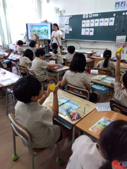 好きな色について学習をしました。歌を歌ったり、英語ゲームをして楽しみました。