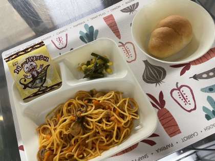 週末にかけて再び暑くなりそうですが、今日の給食は主菜が「スパゲッティ」となっており、子どもたちが食べやすい献立でした。