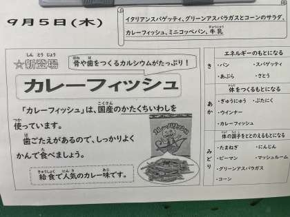 「カレーフィッシュ」は、かたくちいわしにカレーの香りがつけてあり、今日初登場の献立です。