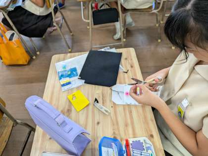 小物づくりをしました。一人ひとりが自分で考えた小物を作ります。小銭入れやマスコット、ペンケースなどさまざまです。