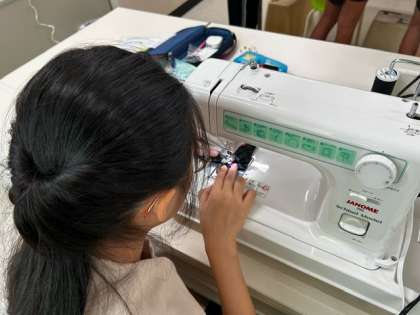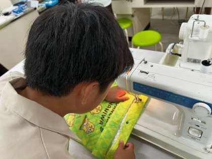 長さを測って印をつける、まち針でとめる、ミシンで縫うなどたくさんの制作手順がありました。