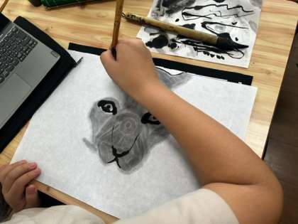 図画工作科で「墨と水から生まれる世界」の学習をしています。