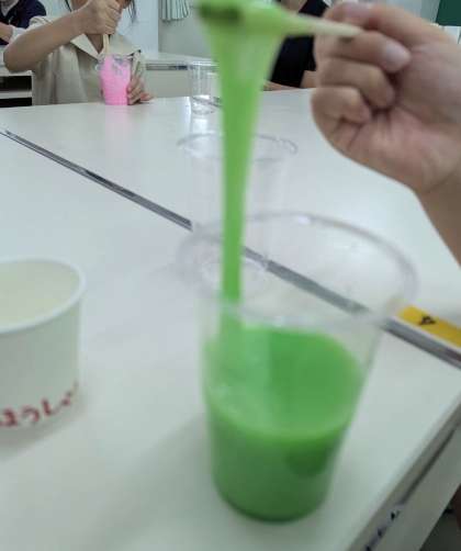 みんなが思い思いに色付けし、カラフルなスライムが沢山できました。