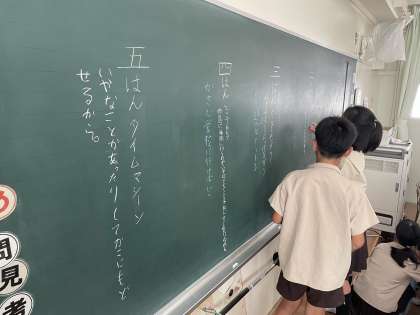 本日は、提案者・参加者・司会・書記・記録などの役割に分かれて話し合い、よかったことやできなかったことについて振り返りました。