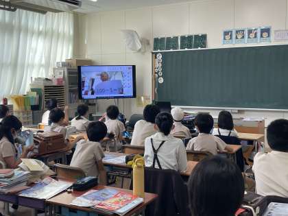 Teamsによる児童朝会の様子です。10月の月目標は「力を合わせて生活しよう!」です。いよいよ明日から、6年生は修学旅行に行ってきます!