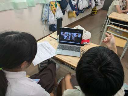 インドネシアとフィリピンの子どもたちとつなぎ、オンラインで交流を深めました。