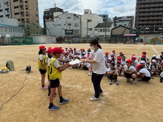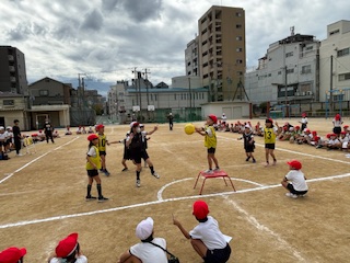 9月の中頃から体育でポートボールを学習していました。はじめはチームの友だちのミスを責めてケンカになることもありました。その度にクラスで話し合いを重ねました。そこからチーム内でも励ましの声掛けが増えました。クラス内でトーナメントを行いクラスの代表をきめました。そして今日は学年でそれぞれの代表が対決する淀りんぴっくでした。負けて悔し泣きのチームもありました。これまでに見れなかったチームワークも見れました。感動の試合でした。そんな白熱した試合で優勝したのは1組です。おめでとう!