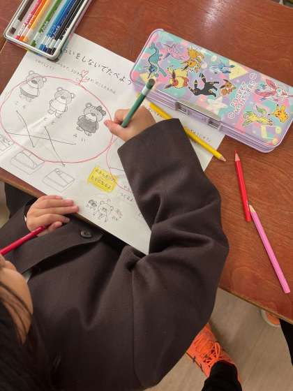 紙芝居あり、プリントありで、バランスのよい食事をすることの大切さを学びました。