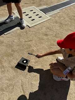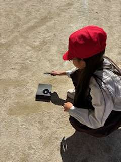 理科の光とかげの学習で太陽の光を虫めがねで集めて黒い紙にあてると、、、けむりがでてきた!紙に穴があいた!と子どもたちはとてもおどろいていました。光を大きく集めるより小さく集める方がけむりが出やすいんですね!教科書だけで学ぶより自分でやる喜びが大切ですね。体験が忘れられない学びになりますね。