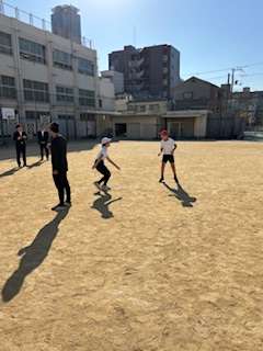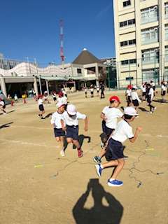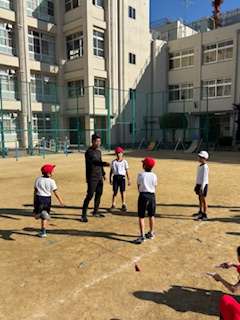 今回はなわとびを使った運動あそびを教えてもらいました。なわとびはとぶだけじゃなく、陣地を区切ったりいろんなあそびができるそうです。なわで区切られた陣地でおにごっこをしたり、9マスで区切られたところから、「せーの」でジャンプをしておにと同じところにきたらアウトというゲームをしたり、楽しそうに身体を動かしていました。