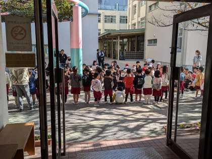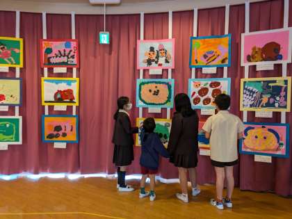 1〜6年生の児童が、中大淀幼稚園の「さくひんてん」を鑑賞しました。