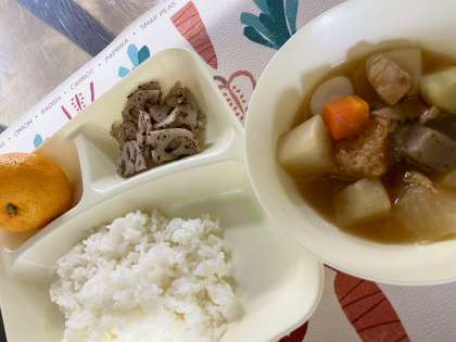 今日は旬の野菜「れんこん」を赤じそであえた副菜が献立に登場です。