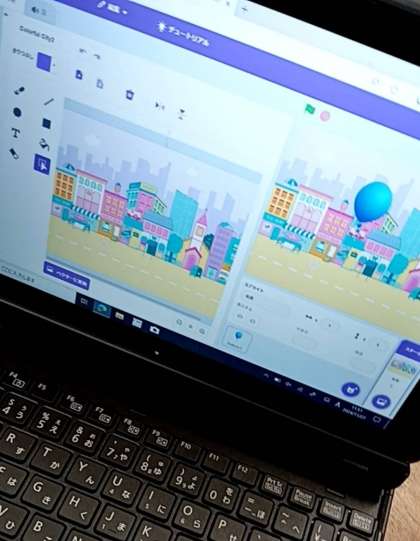 最初は難しくて先生やICT支援員さんに手伝ってもらっていたけれど、どんどんプログラムを変える楽しさに気付き、プログラムを進化させながら世界に一つのゲームをつくることができました!