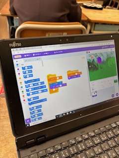ICT支援員さんに来て頂き、いつもより少し難しいプログラミングに挑戦!今日は、自分で風船ゲームをつくりました!!
