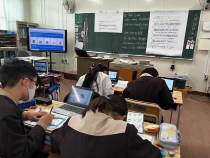 とても難しい内容ですが、子どもたちはタブレットを上手に使って単語を調べながら、文章を書き進めています。