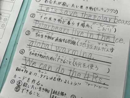 救いたい生き物と、その生き物のためにできることを伝える学習をしています。