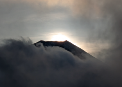 富士山は雲に隠れてしまい、わずかの太陽しか見ることができず、