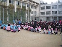 また、自分だけでなく、他の人の安全も守るため、使っていた清掃用具はどう置くのがよいかも考えて避難訓練をしました。