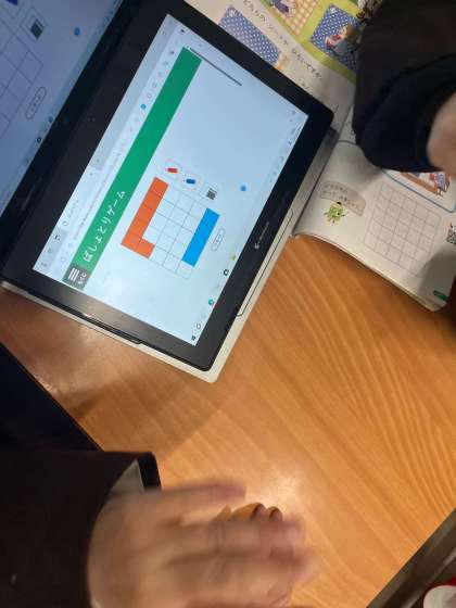 学習の理解をより深めるために、タブレット端末を活用して、「ばしょとりゲーム」も行いました。