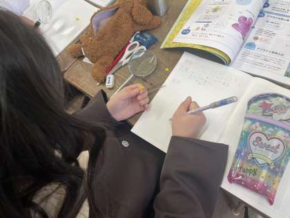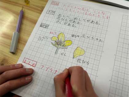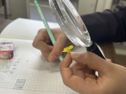 理科の学習で、アブラナを観察しました。虫めがねでしっかりと見て、集中してノートにかいていました。とても上手にかいている児童がたくさんいました!すばらしい!