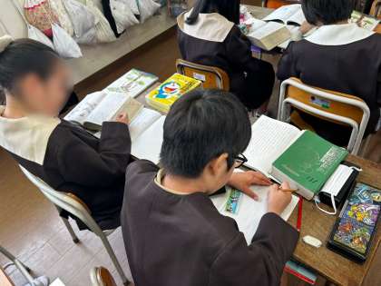 国語科の学習で、本文に出てくる言葉の意味を辞典を使って調べました。