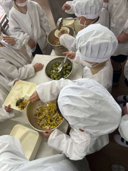 6年生に見守ってもらいながら、1年生だけで当番のお仕事にチャレンジ!