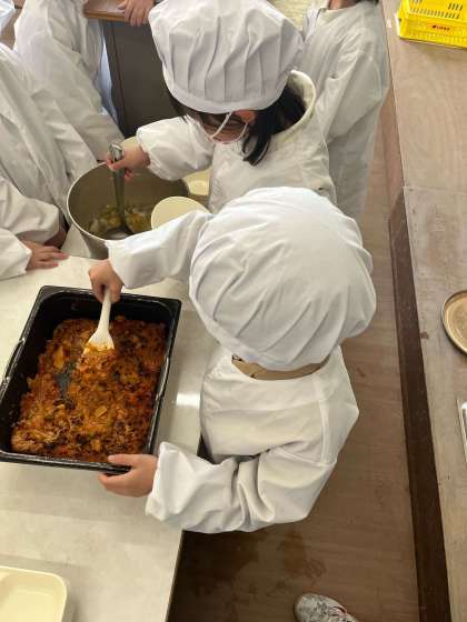 「先生、もう自分たちで給食の準備できるよ!」と、給食当番のお仕事に意欲的に取り組む1年生。