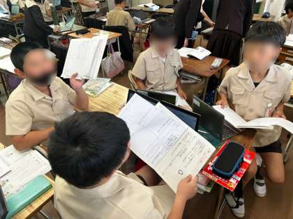 チームに分かれて、聞きたいことをノートやパソコンに書き出し、インタビューに向けた準備をしています。