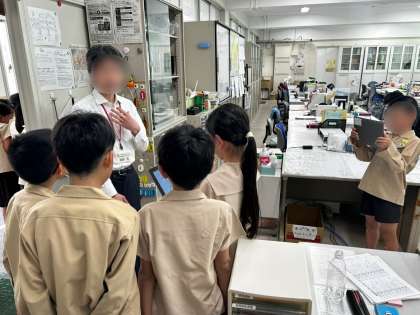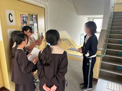 各チームのインタビューの様子を撮影し、教室で振り返りをしました。
