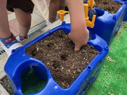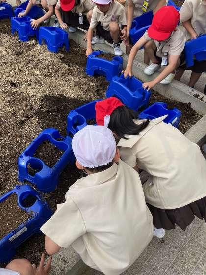 あさがおを育てるための土を入れたり、種を植えたりしました。