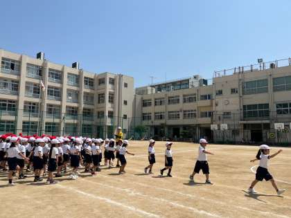 暑い中、運動会の入退場の練習に一生懸命取り組みました。