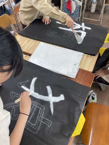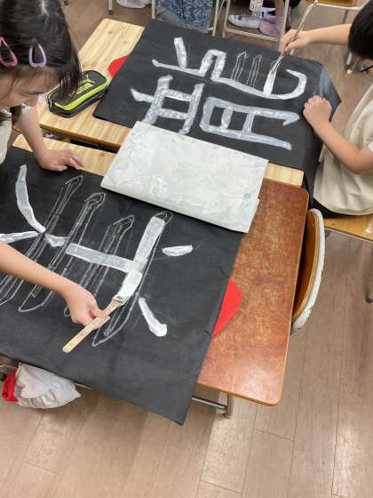 ソーラン節で着る法被にインクで色をつけました。真剣な眼差しで、丁寧に…来週の本番では、この法被を着て堂々と踊ってくれることと思います。