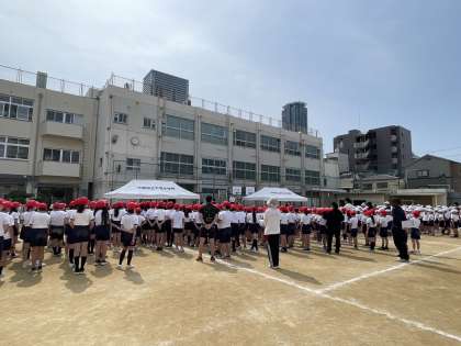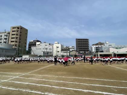 5月23日(金)1時間目、運動会にむけて全体練習を行いました。開閉会式の練習を中心に行いました。みんな暑い中、よく頑張りました!来週の全体練習では、応援合戦の練習をする予定です。