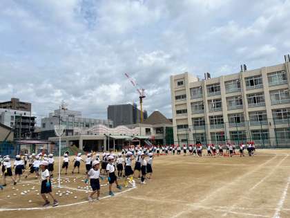 今日はカラー手袋をつけて、ダンスと玉入れの練習をしました!