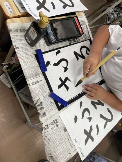 久しぶりに毛筆をしました。書いた字は「ふるさと」平がなでつながりを意識して丁寧に書きました。