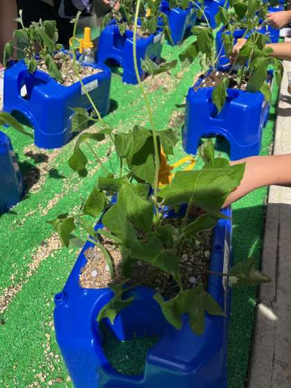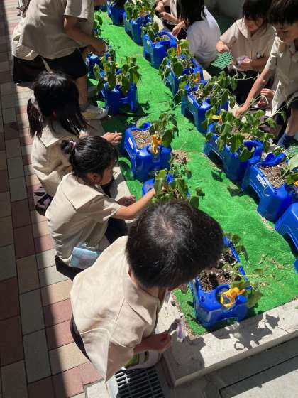 水や肥料をあげたり、間引きをしたりして、あさがおのお世話をがんばっています。