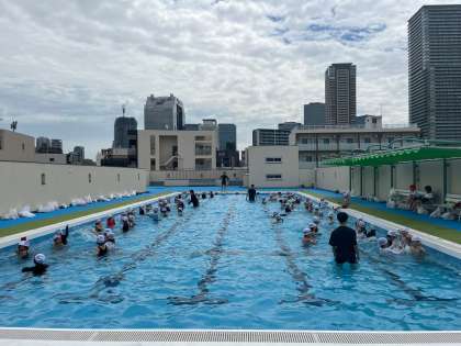 プールの約束をしっかりと聞きながら、水遊びを楽しんでいます。