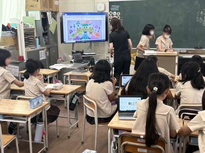 3つ目は、新聞掲示委員会です。玄関の掲示物を作成していました。途中経過のみですが、きれいなあじさいができていました。完成が楽しみです。
