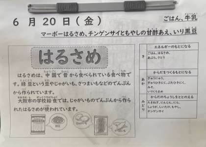 大阪市の学校給食では、じゃがいものでんぷんから作られた春雨が使われています。