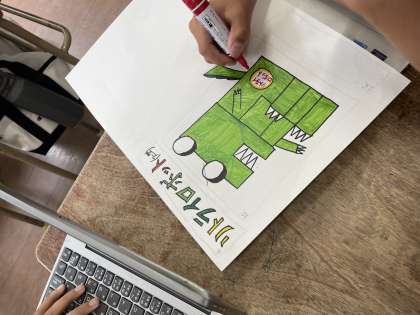 総読の時間を通して「未来のロボット」について考えを深めてきました。学習のまとめとして、自分たちで未来のロボットを考えています。グループで協力して、イラストをかいたり、説明を考えたりしました。